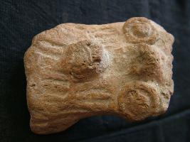 | Description / विवरण | It seems to be a part of terracotta figurine, only the face part is present. Eyes are circular, its mouth and node are pinched internally. |