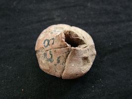| Description / विवरण | It is a spherical shaped bead with incised lines across it. It has a perforation in it. |