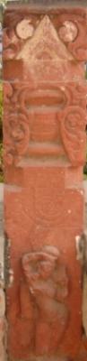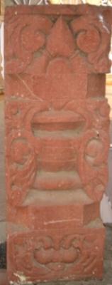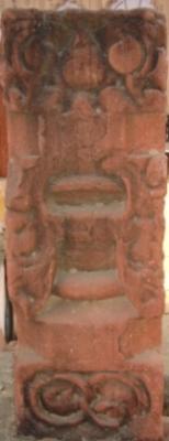 | Description / विवरण | Sculptured architectural fragment, part of a pillar depicting a ghatpalava at centre. At the lower part a Surasundari is depicted looking at a mirror. Her right breast and right leg are chopped off while her face is mutilated. On the upper part carvings of flora and fauna are seen in all four sides. |