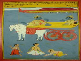| Description / विवरण | Miniature painting based on Shri Bhagwat Gita. It depicts Krishna preaching Arjun that those devotee are favourite for him who doesn t be happy or doesn t have jealousy or without thinking and lost good and bad. |