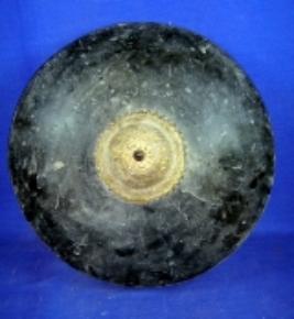 | Description / विवरण | Black, circular shield made of leather having high iron phool bob in the centre with embossed floral designs of golden colour. |