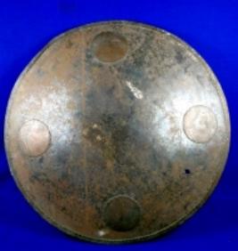 | Description / विवरण | Iron shield with flat bobs in the shape of sun. Its inside is plain. |