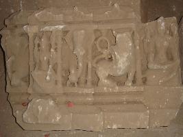 | Description / विवरण | Sculptured architectural fragment part of a pedestal of a Jaina. Indrani is depicted sitting in four handed a deity also is depicted sitting on the left side a lion also is depicted. |
