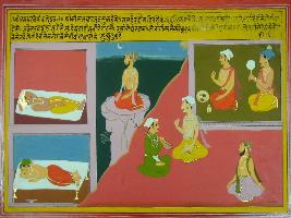| Description / विवरण | Miniature painting based on Shri Bhagwat Gita. It depicts Krishna preaching Arjun that only intelligent can control his senses, when people sleep in their houses, then sage remain woke up. When they all wake up, it is nigh for sage. This meant, Sage s see Brahma when nobody can. |