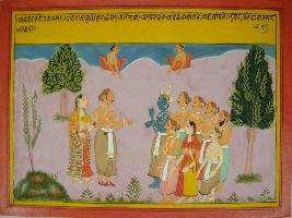 | Description / विवरण | Miniature painting based on Mahabharat - Vana parva. Pandavas are depicted with Krishna in a forest. |