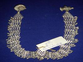 | Description / विवरण | Metal silver plated Bali worn on the forehead by females. It has five strings, chained together, with circular ends ear rings and ghungaroos. It is traditional jewellery from Girasiya tribe. |