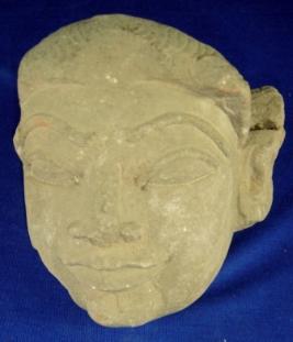 | Description / विवरण | Stone head probably of a women having open eyes, mutilated nose, thin upper lip and thick lower lip. Back part of head, part of his right chin are broken. |