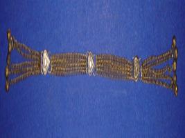 | Description / विवरण | Metal buttons, used in the blouse of females, by the Girasiya tribe. Five heart shaped buttons are joined with five strings of chains in a long row. Both the ends have small ghungaroos . |
