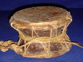 | Description / विवरण | A musical instrument called Dhak or Damru made of Jute, camel hide and wood. This is an instrument of Girasiya tribe. The shape of the drum is broad in both ends and the centre part is narrow for easy grip. |