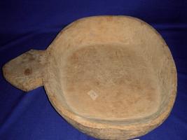 | Description / विवरण | A wooden utensil Girasiya tribe. Its flat circular utensil with a broad handle, without any decoration. |