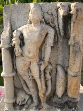 | Description / विवरण | Independent sculpture of Indra standing in pillared niche. His right arm is missing and left hand is resting on thigh. The face is totally rubbed off. In the right below elephant is seated and in the left a lotus is depicted. |