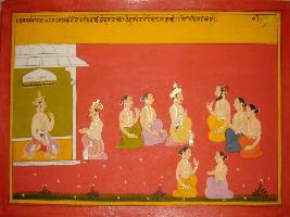 | Description / विवरण | Miniature painting based on Mahabharat - Vana parva depicting sage Markandeya telling the story of a king of Hehaya kingdom to Yudhisthir. At the right side the king of Hehaya is depicted. |