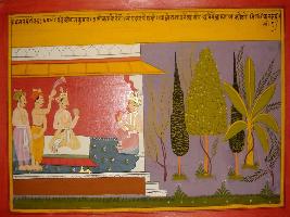 | Description / विवरण | Miniature painting based on Mahabharat - Vana parva depicting prince meeting king. |