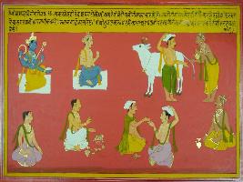 | Description / विवरण | Miniature painting based on Shri Bhagwat Gita. It depicts that yogi who do all Karma and Dharma without the desire and can control his all senses can get moksha and he can meet Parmeshvar. |