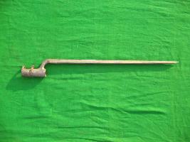 | Description / विवरण | It is an Italian Baynot. It has triangular shape blade. All three edge of the blade is sharp and tip is pointed. It has a cylindrical hook with screw. |