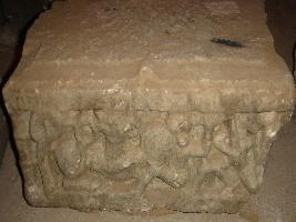 | Description / विवरण | Sculptured architectural fragment part of Adhisthan, some composite figures with human body and animal head is carved out here. Probably of a vyala. |