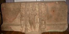 | Description / विवरण | Sculptured architectural fragment of Indri in standing position, holding a lotus stem with right and holding the tussle of drapery with left hand. She is adorned with jewels and on both sides vyala figures are depicted. |