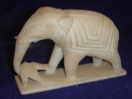 | Description / विवरण | Marble decorative piece of an elephant carrying a crocodile in its trunk. crocodile is biting elephant s foreleg. This scene is depiction of Gajendra moksha. |