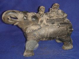 | Description / विवरण | Elephant, made of marble, with a rider Mahavat and a man sitting on hauda, carved upon it. The elephant garment has incised line designs. |