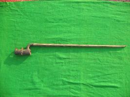 | Description / विवरण | It is an Italian Baynot. It has triangular shape blade. All three edge of the blade is sharp and tip is pointed. It has a cylindrical hook with screw. |