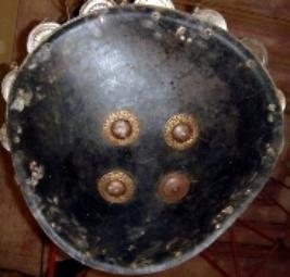 | Description / विवरण | Shield made of leather circular in shape with four bobs. |
