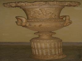 | Description / विवरण | Flower vase in ten parts, made up of Italian marble, very heavy in size and well decorated having carvings of floral and human motifs. On the upper most part chipper of grapes is made. |