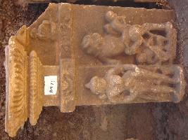 | Description / विवरण | Sculptured architectural fragment, men depicted controlling vyala and a woman depicted standing on its right side. |