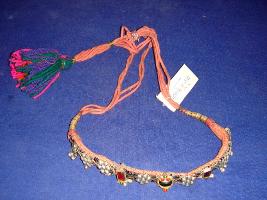 | Description / विवरण | Necklace Kanthi made of woollen threads, silver plated metal and semi precious stones. Ghungaroos are tied with the necklace for design. It is an ornament of Girasiya tribe of Rajasthan. |
