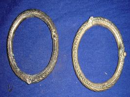 | Description / विवरण | A pair of Langar anklets worn by Girasiya tribe women, It has coiled design on the above side. |