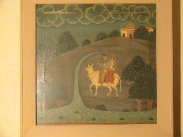 | Description / विवरण | This is a oil painting of Shiva and Parvati. In this painting Shiva and Parvati are riding on bull. Ganga is flowing out of Shiva s hairs. In background clouds are seen with a beautiful landscape . |
