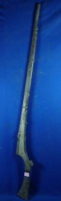 | Description / विवरण | Long match-lock todedar Sindhi gun having single barrel. It is rusted and the butt is partly broken. |