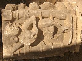 | Description / विवरण | Sculptured architectural fragment of a pillar having a female dancer in dancing pose with drums. Her right hand is beating the drums. Her right hand is beating the drum while left arm is broken from wrist. She is wearing earring, pearl garland and tussels of her drapery is visible upto her knee. Towards her right is another female dancer and in her left, a female figure which is almost chopped off. |
