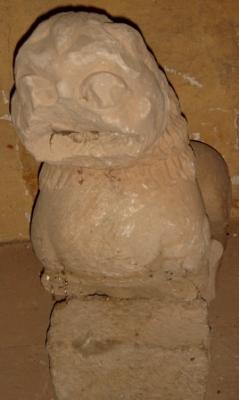 | Description / विवरण | Sculptured architectural fragment depicting a lion seated on a pedestal. Its fore limbs and mouth are chopped off. The mane of lion is also visible. |