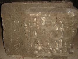 | Description / विवरण | Sculptured architectural fragment of corner pillar having two faces. Both depict standing four armed Shiva in pillared niches. Attributes from the right below 1 not recognizable 2 trident 3 and 4 not recognizable. |