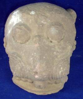| Description / विवरण | Sculptured architectural fragment depicting a lion head with bulging and prominent teeth. |