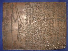 | Description / विवरण | Copper plate belong to Maharaja Jawan Singhji dated V.S. 1891. It has 16 lines in Mewari dialect. It starts with the line Shri Ram Jayati . |