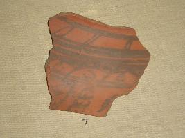 | Description / विवरण | It is made of terracotta. The design on pottery is having specimen of geometric design. The pottery has border of parrallel lines, with wavy line designing throughout the pottery. |