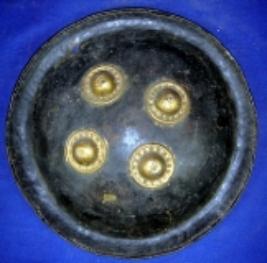 | Description / विवरण | Small shield dhal , having four bobs made of brass on exterior and interior is plain. |