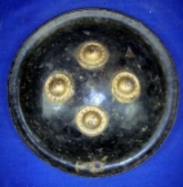 | Description / विवरण | Small shield dhal , having four bobs made of brass on exterior and interior is plain. |