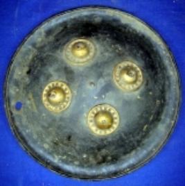 | Description / विवरण | Small shield dhal , having four bobs made of brass on exterior and interior is plain. |