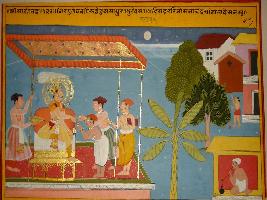 | Description / विवरण | Miniature painting based on Sarangatattva - an independent work of Sankhya school of philosophy. It describes about the alms. A king is giving alms to poor people and sages. According to Sankhya school meal alms is bigger than all. It is an incomplete painting. |