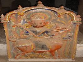 | Description / विवरण | Earthen tablet depicting local male deity - Sariya Rakaji, mounted on horse, carrying a stick in his hands. |