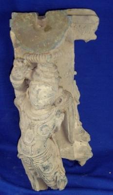 | Description / विवरण | Fragment of pillar depicting male chauri bearer holding chauri in right hand. Left hand and legs are broken. The figure is duly ornamented. |