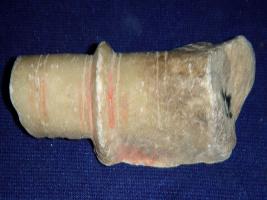 | Description / विवरण | Small piece of smooth, curved probably fragment of a sculpture there are line engravings and a ringlet in the middle. |