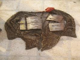 | Description / विवरण | It is a chain armour. It has 11 iron plates to prevent important parts of upper body. It has two arms nets made of iron. It is used in battle fields. |