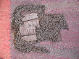 | Description / विवरण | It is a chain armour. It has 9 iron plates at bottom to top. It is like net except plate. It has two arms nets made of iron. It is used in battle fields. |