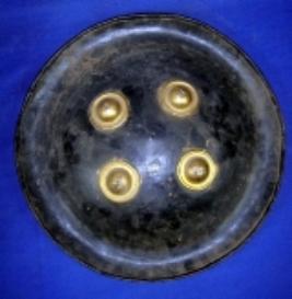 | Description / विवरण | Small shield dhal , having four bobs made of brass on exterior and interior is plain. |