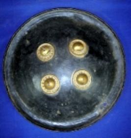 | Description / विवरण | Small shield dhal , having four bobs made of brass on exterior and interior is plain. |