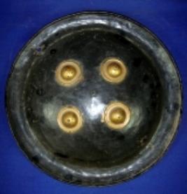| Description / विवरण | Small shield dhal , having four bobs made of brass on exterior and interior is plain. |