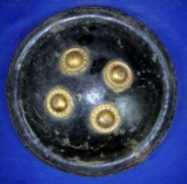 | Description / विवरण | Small shield dhal , having four bobs made of brass on exterior and interior is plain. |
